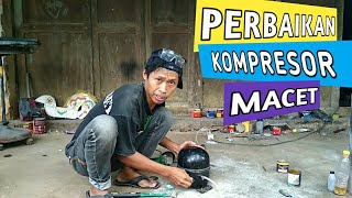 perbaikan kompresor yang macet karena kehabisan oli/ terlalu lama dalam pemakaian.